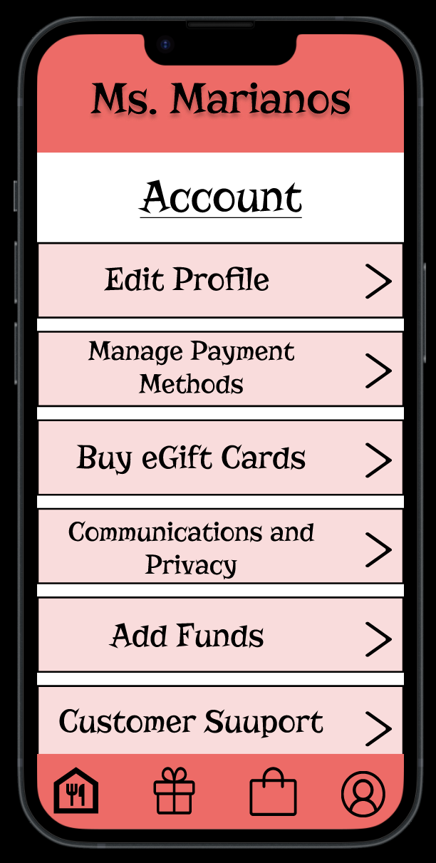 This is the account page! Here you can see and change everything about your account. Save payment methods here, enter your gift cards, and change your profile all from this one page. And in case you need it you can reach our wonderful customer service team from this page.