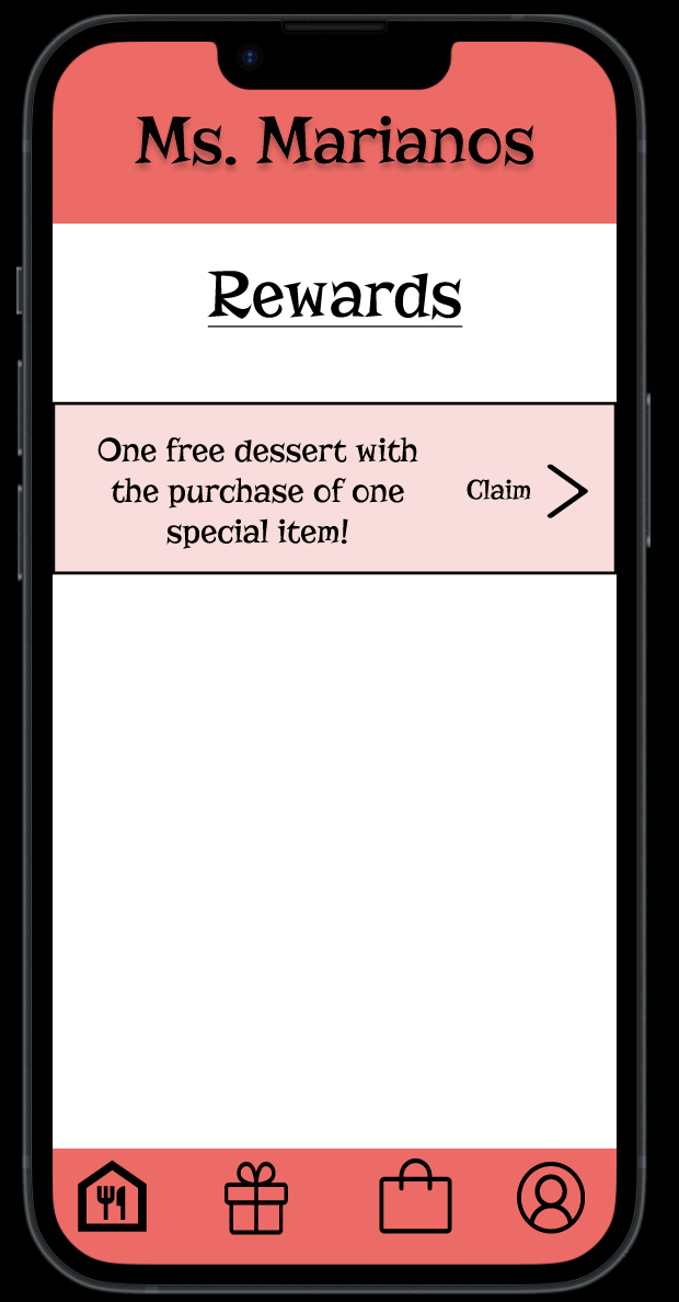 This is the rewards page! Here you can claim any rewards you might have. Ms. Marianos loves their customers so we offer lots of rewards. Get some for your birthday, all the holidays, milestones in orders, and even random ones! All you have to do to claim these rewards is to click on the reward you would like and press the claim button, it will automatically be added to your cart. All you have to do is checkout.